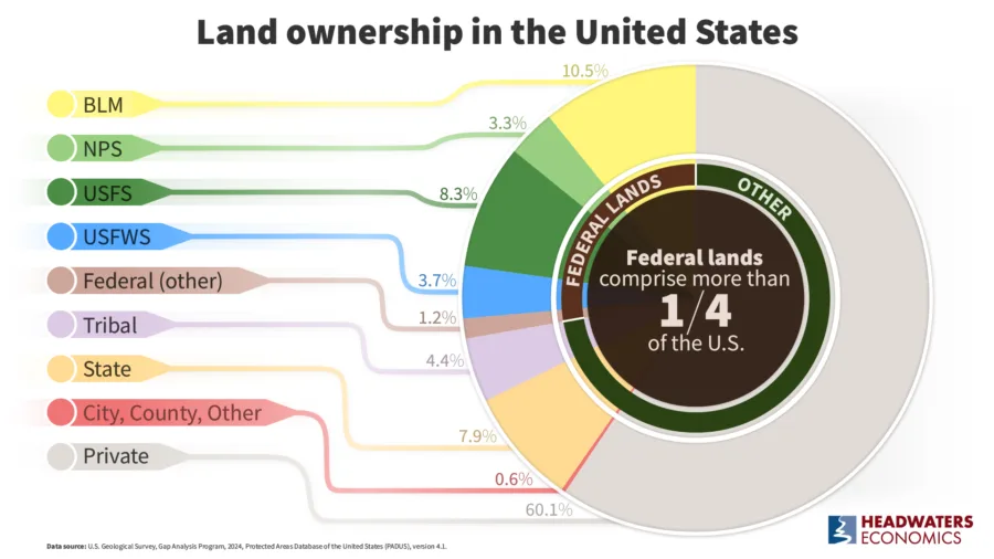 We have updated our webpage that tracks public land ownership in the United States with the latest available federal data. View interactive maps and charts for all 828 million acres of federal, state, and municipal land in the U.S., including breakdowns by state and county.